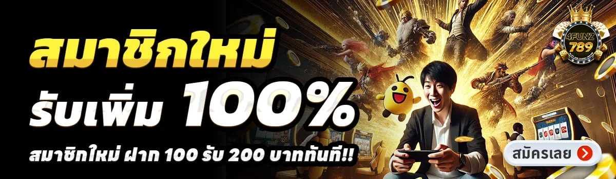 ทาง 4FUNZ789 กำลังมอบโบนัสต้อนรับสมาชิกใหม่สูงถึง 100% ซึ่งถือว่าเป็นข้อเสนอที่น่าสนใจมากๆ เลยล่ะ เพราะนั่นหมายความว่าเมื่อคุณสมัครสมาชิกและทำการฝากเงินครั้งแรก คุณจะได้รับเงินโบนัสเพิ่มเท่าตัวทันที ยกตัวอย่างง่ายๆ ถ้าคุณฝากเงิน 1,000 บาท คุณก็จะได้เครดิตเพิ่มอีก 1,000 บาท รวมเป็น 2,000 บาทที่คุณสามารถนำไปเดิมพันได้
